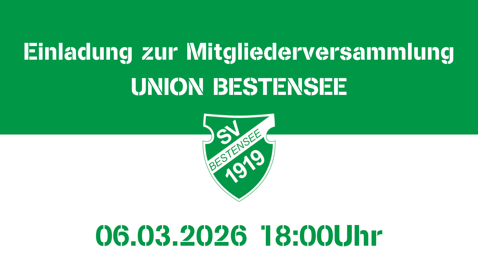gemäß §8 Abs. 2 der Vereinssatzung des SV Grün/Weiß Union Bestensee e.V.laden wir Euch hiermit zu der am